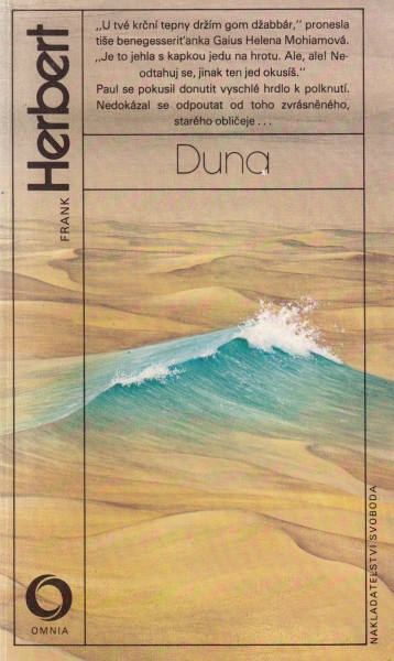 První díl šestidílného sci-fi románu vypráví o pouštní planetě Arrakis s naprostým nedostatkem vody a jediným známým nalezištěm zvláštního koření, které má moc prodloužit lidský život a které poskytuje člověku mimořádné psychické schopnosti. Román vyšel poprvé v roce 1966, získal několik literárních cen (např. Nebula) a měl u čtenářů omračující ohlas. Podle románu vznikl o dvě desetiletí později i film, který natočil známý režisér David Lynch. Frank Herbert svůj úspěch rozvinul v pěti pokračováních zachycujících následné osudy planety Arrakis a boje o její ovládnutí. Šestisvazková sága Duna amerického spisovatele Franka Herberta patří do zlatého fondu světového science fiction.